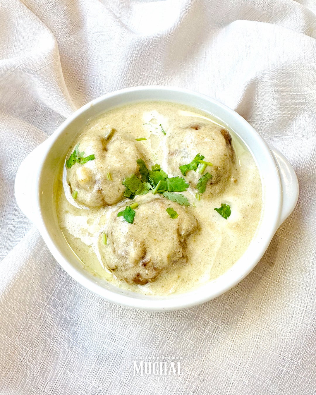 カシューナッツやけしの実を贅沢に使ったホワイトグレービーに、ふんわり柔らかなチキン団子を合わせた上品な味わいが特徴です。