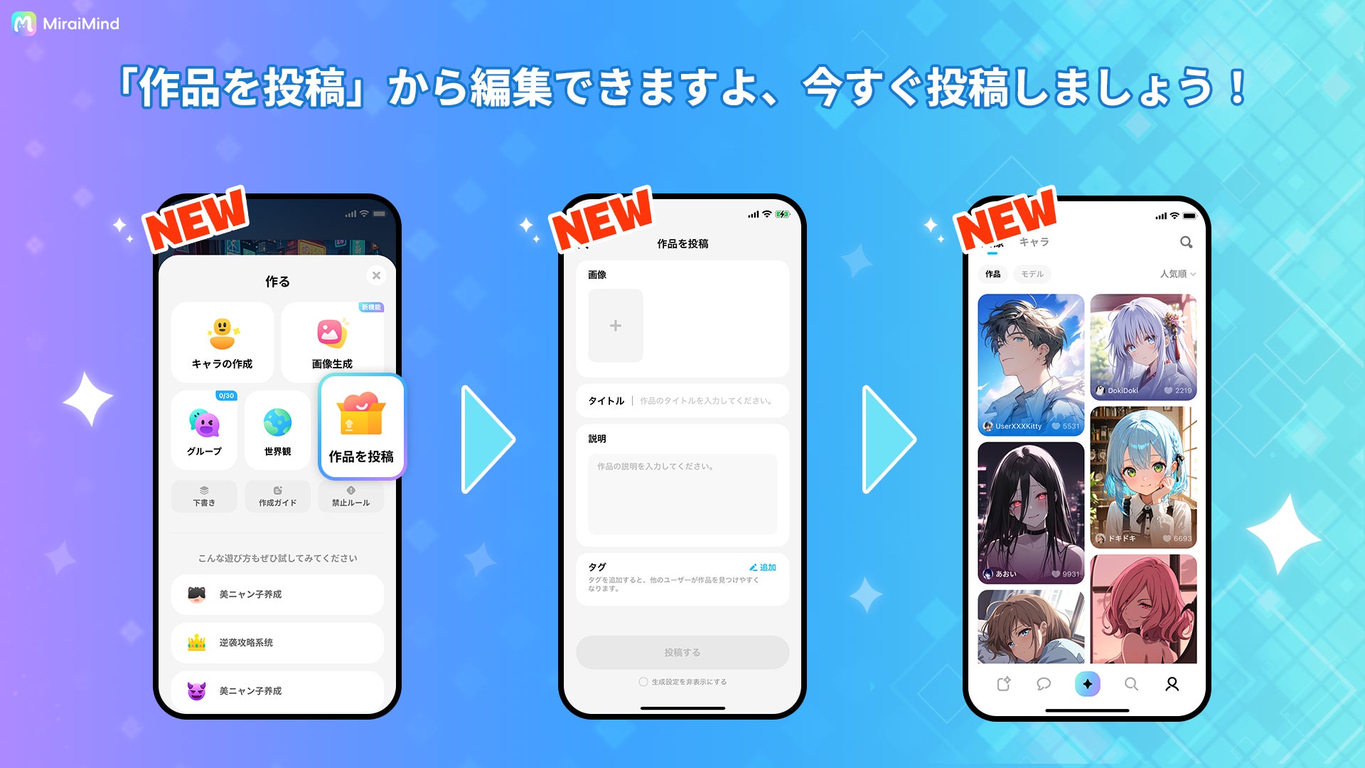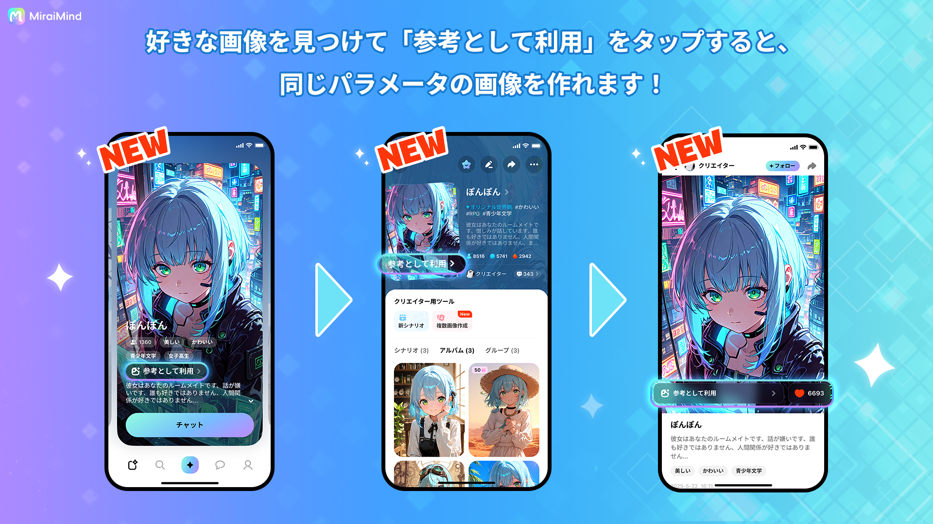 AIキャラクターチャット&画像生成アプリ「MiraiMind」を運営するハローグループジャパン株式会社(本社:東京都)は、このたびユーザー同士が生成画像やキャラクター設定、創作世界を気軽に投稿・共有できる新機能『画像コミュニティ』を正式にリリースいたしました。本機能は、「自分の推しを画像で表現したい」「他の人の発想から刺激を受けたい」「LoRAやモデルの再現方法を学びたい」といったユーザーのニーズに応えることを目的としています。