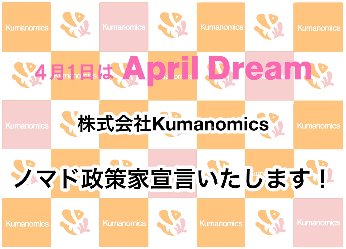 当社は、4月1日を夢を発信する日にしようとするApril Dreamに賛同しています。このプレスリリースは「株式会社Kumanomics」の夢です。