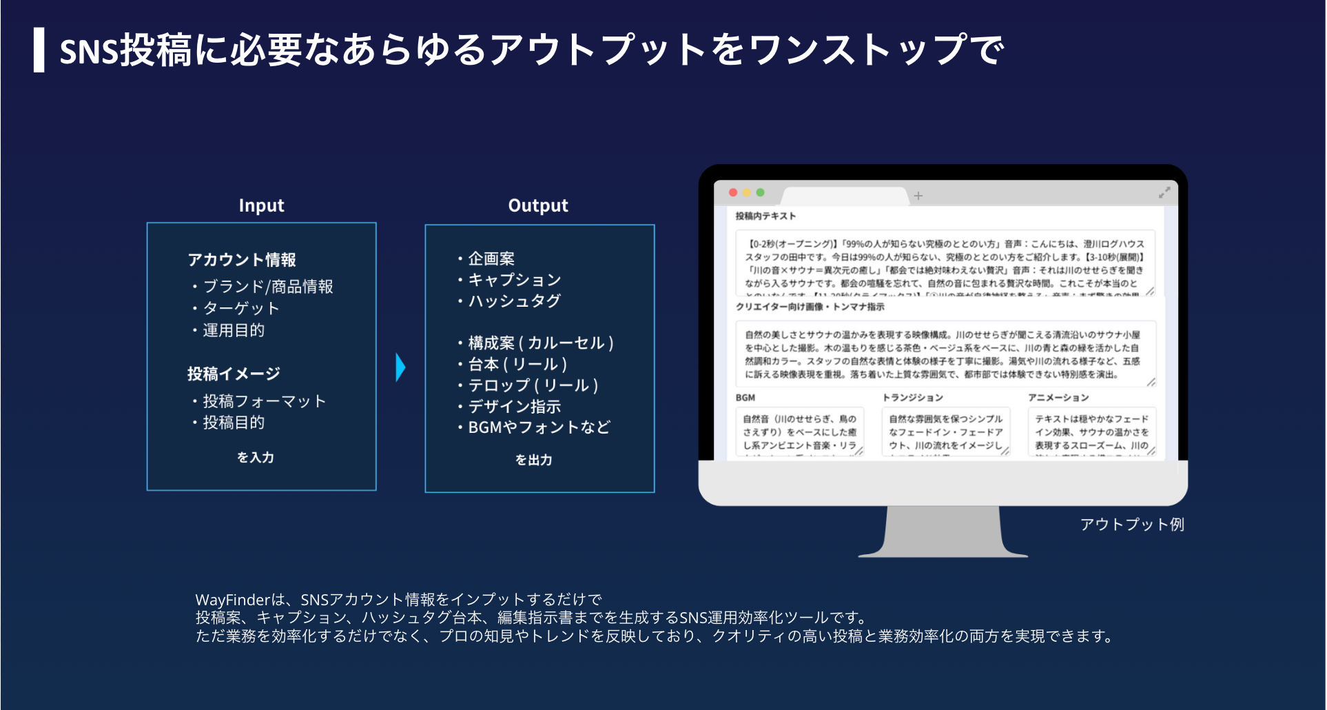 ■ SNS企画生成AI「WayFinder」サービス概要