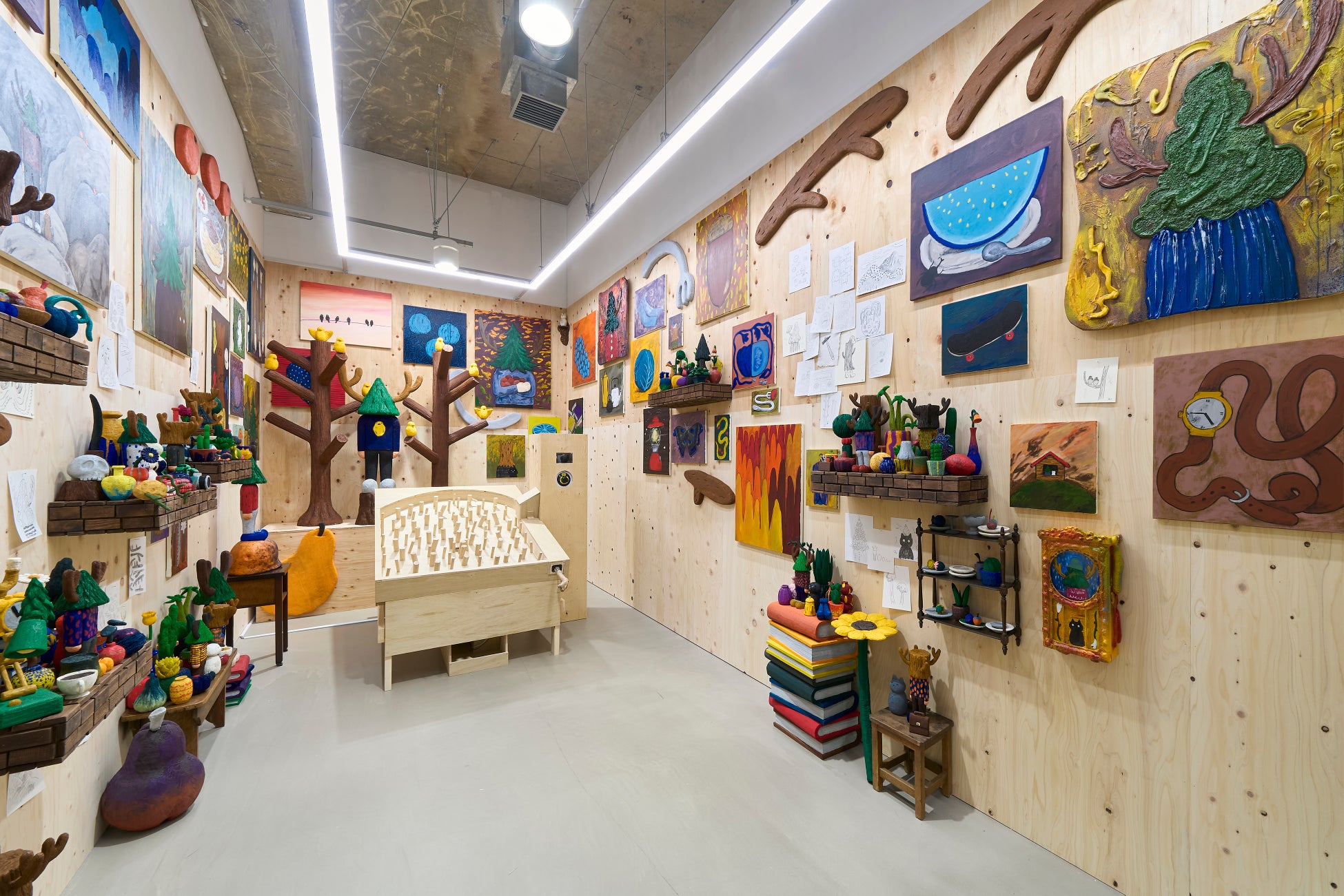 大型作品の展示に加え、オリジナルのピンボールマシンを設置。ここでしか手に入らない限定トートバッグやステッカーセットも展開予定。