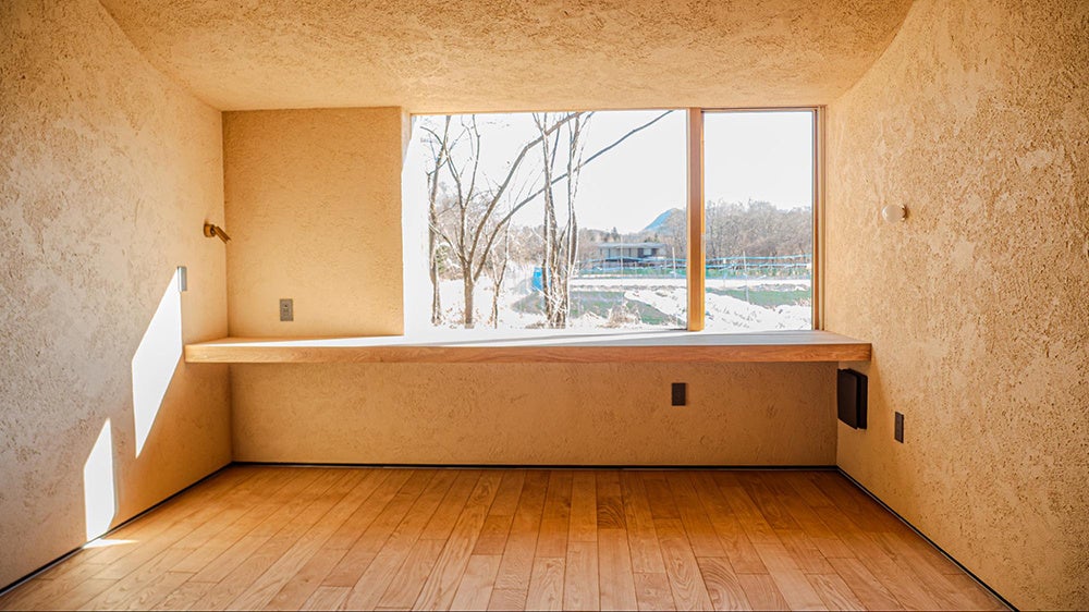 窓から差し込むやわらかな光が、土と木の質感を静かに照らし、空間全体を包み込みます。