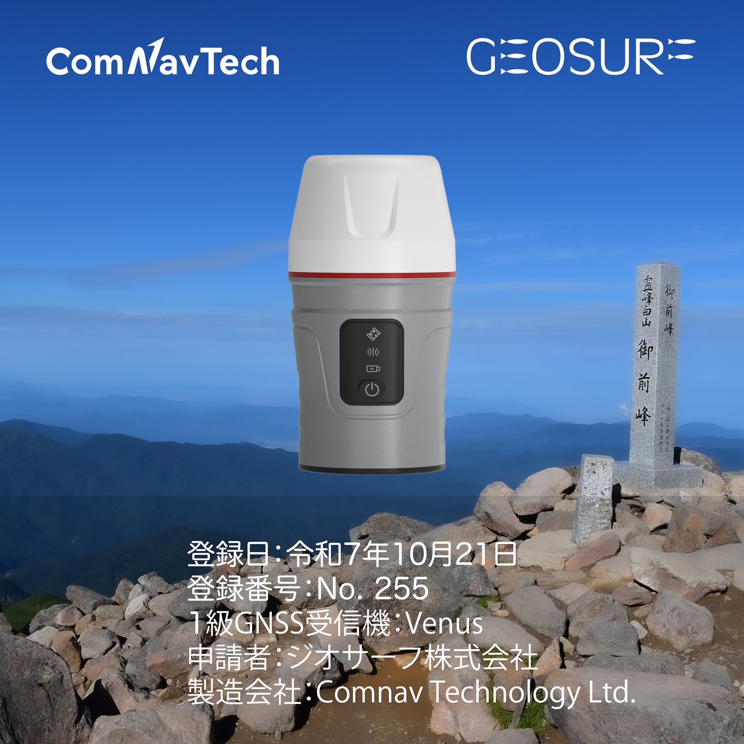 ジオサーフ株式会社(本社:東京都大田区、代表取締役:内山雅之)は、ComNav Technology Ltd.(中国・上海市)製 GNSS受信機「Venus」が、国土地理院の測量機器性能基準に基づく検定・登録を経て、「1級GNSS測量機」として正式に登録されたことをお知らせいたします。