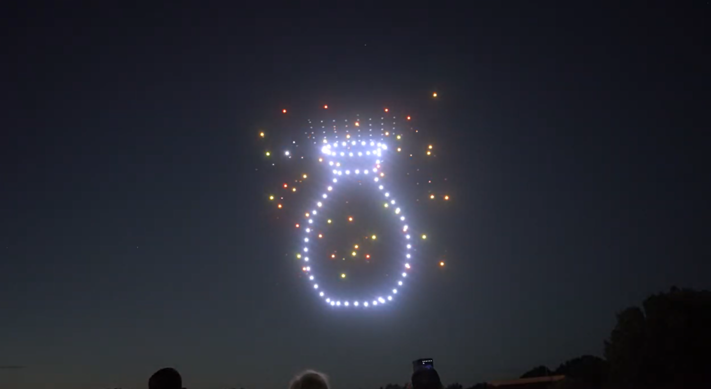 また、ショーのオープニングとフィナーレは、全機体の光を鮮やかなピンク色に統一し、来場者に配布したピンク色のペンライトや光るブレスレットと一体となった幻想的な空間を演出しました。