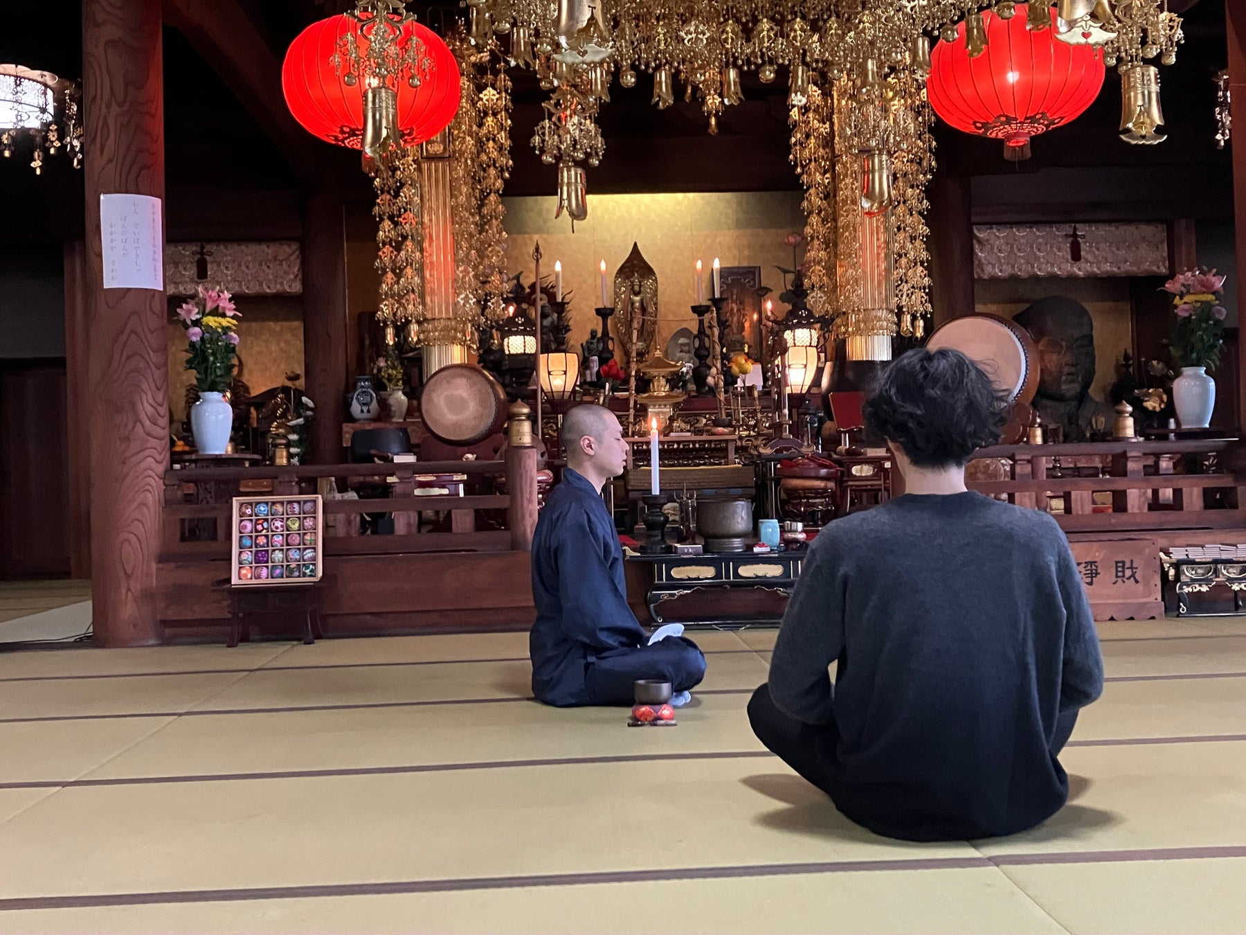 畳の上に座り、ゆっくりと呼吸を整え、住職の案内に耳を傾ける時間。
