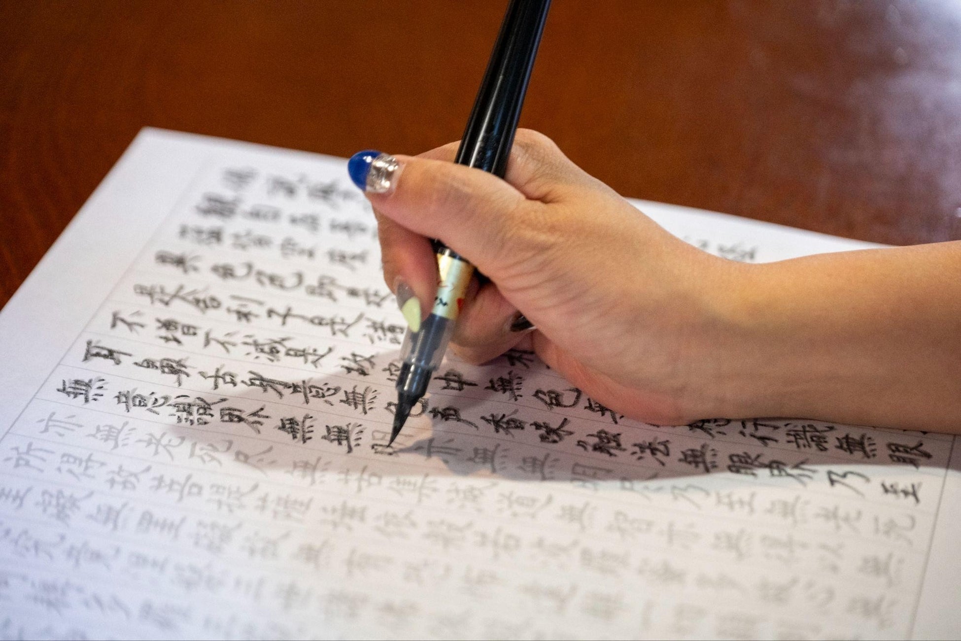 筆を動かしながら文字と向き合う時間は、自然と呼吸が整い、落ち着いた気持ちで過ごす機会となります。日常とは異なる環境の中で集中する体験として、企業や団体のプログラムにも取り入れられています。