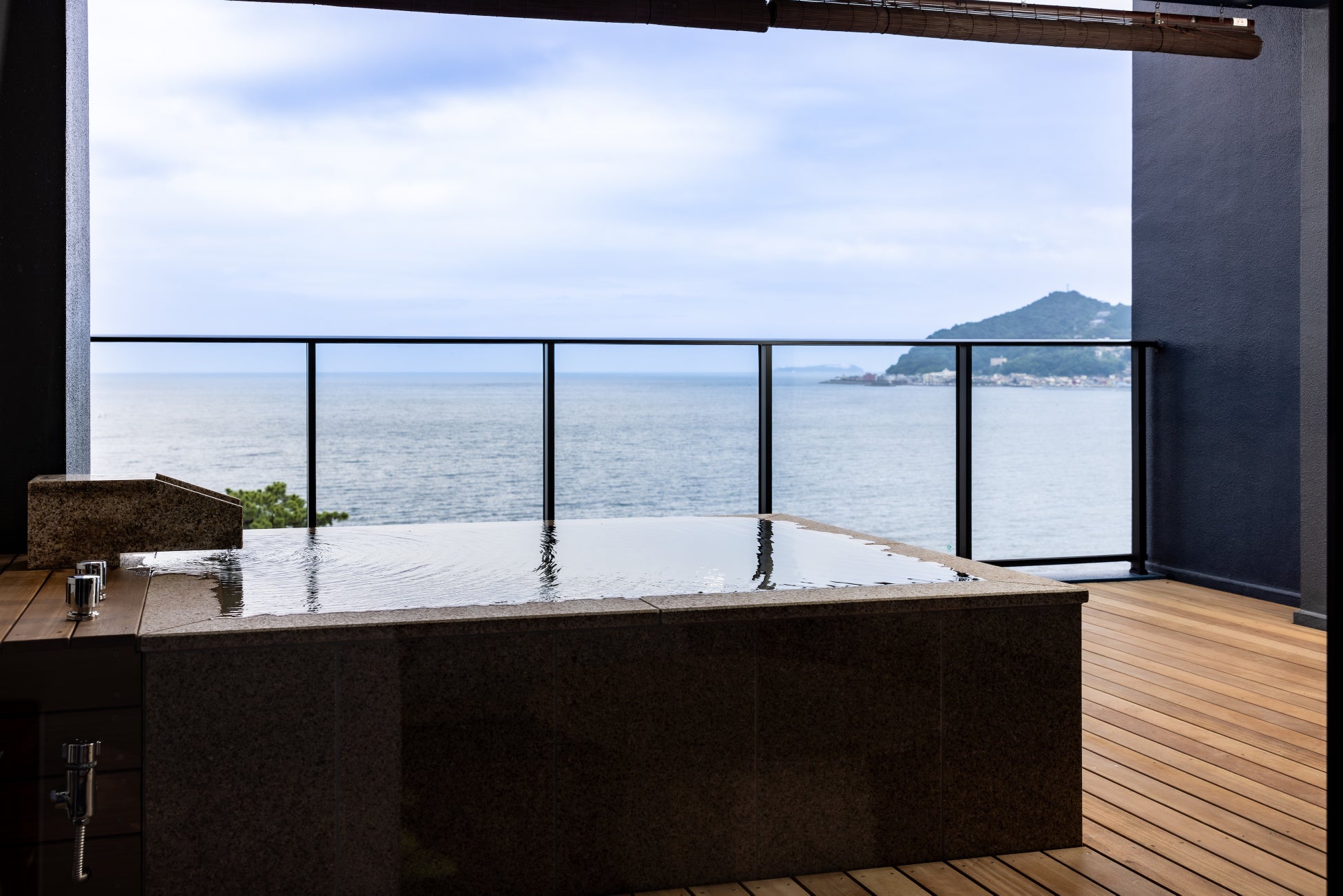 1940年創業、86年目を迎えた老舗旅館。館内すべての浴場は、邸内より湧き出る天然温泉をかけ流しで提供しています。宿泊者用の貸切風呂から眺める景色は絶景で、相模湾や熱海の市街地、条件がいいときには房総半島まで見通せます。併設のダイニング網代木-AJIROGI-では熱々のステーキや海鮮料理などの鉄板会席ディナーを楽しむことができます(予約制)。