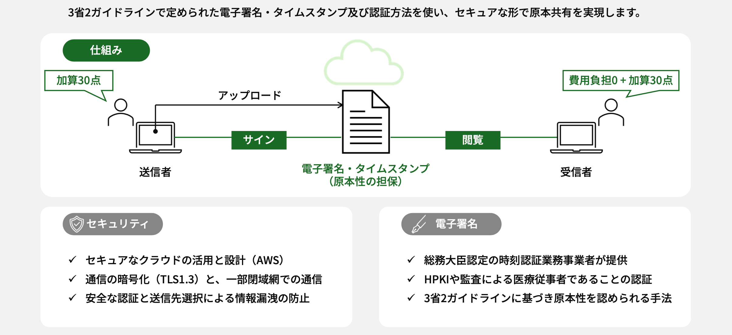 ・送る側(病院):検査・画像データを添付して電子的に提供することで、「検査・画像情報提供加算(30点)」の取得対象となります。