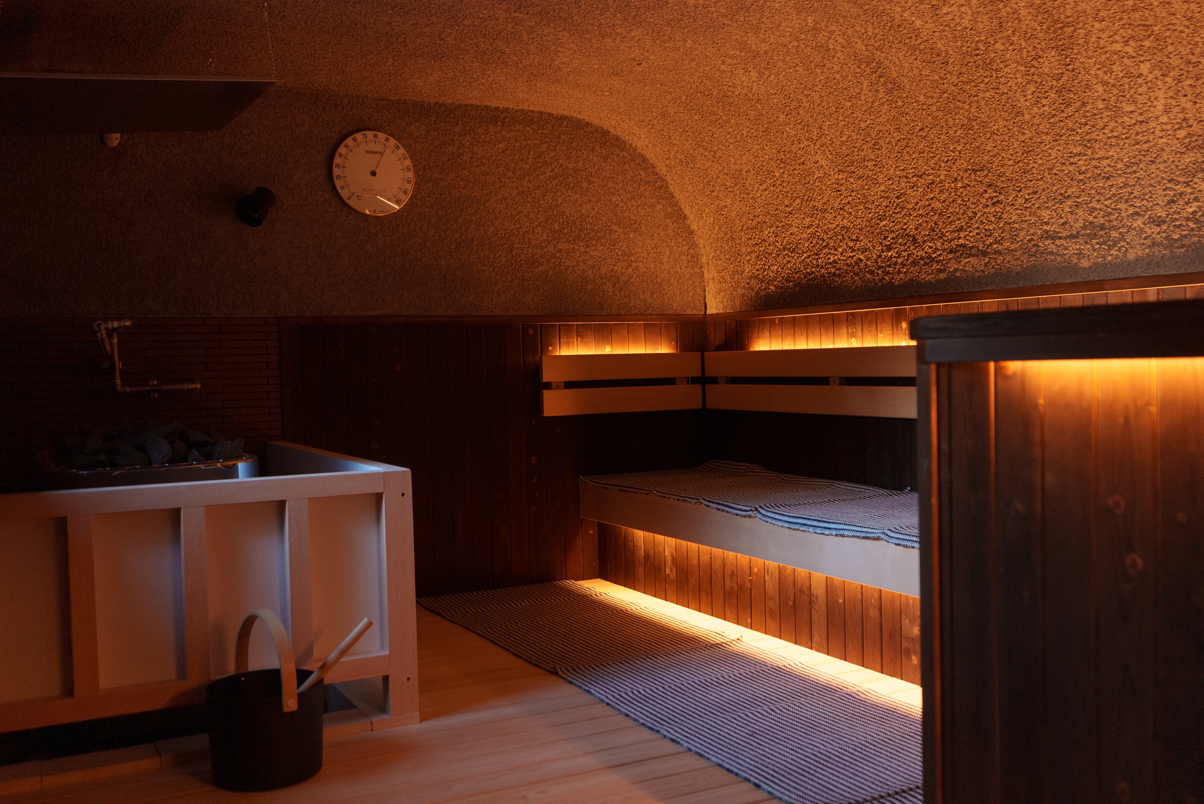 自然に囲まれた開放的な浴室で、4種の浴槽とサウナをお楽しみいただけます。茨城県内の源泉を運んだ「ナトリウム-硫酸塩冷鉱泉(低張性-弱アルカリ性-冷鉱泉)」は、無色透明で肌あたりがやわらかく、体の芯からじんわり温めてくれます。植物園で育てたハーブを使用したハーブ湯では、ボタニカルな香りに包まれながらリラックスできます。また、男女浴室にはオートロウリュの高温ドライサウナ、男性浴室には、洞窟をイメージしたセルフロウリュの蒸気浴を楽しめる中温高湿サウナもご用意しています。地下から汲み上げた井戸水の水風呂で、火照った身体をクールダウンし、澄んだ空気の中で“自然と“ととのう体験が叶います。