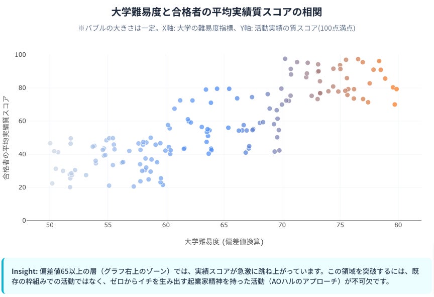 大学の教授陣は、大人や生成AIがお膳立てした「実行を伴わない綺麗なレポート」を即座に見抜きます。AOハルは、日本の高校生にアメリカの「Tier 1」クラスに相当する社会実装経験を積ませるための画期的なメソッドです。