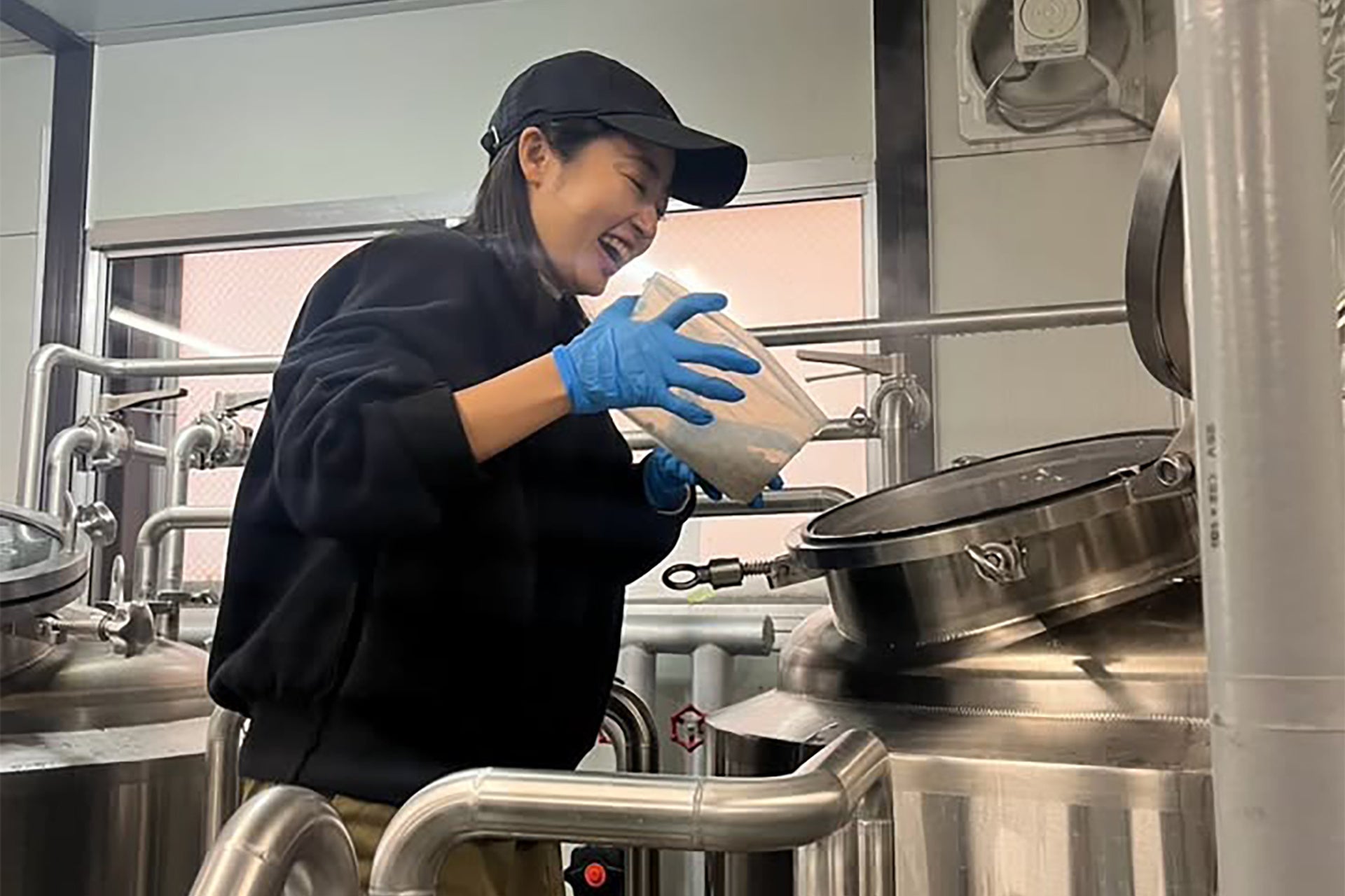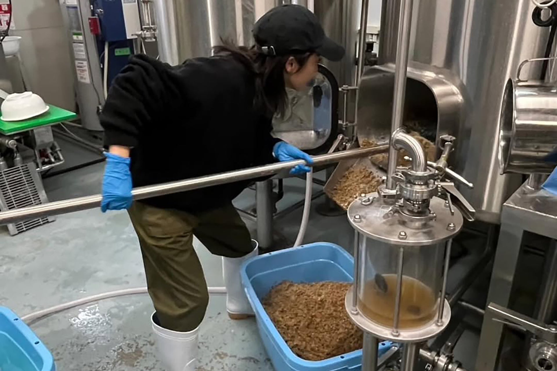 仕込み前に試飲させていただいた麦汁(アルコール発生前)は、トロっとした質感と水あめのような甘さが印象的。フルーティーで甘みのある味わいを際立たせるために、オーツ麦を加えてとろみのある質感に調整されており、ご夫婦2人だけで製造から出荷まで一貫して行うNAMI NO OTO BREWINGのクラフトマンシップを肌で感じることができました。