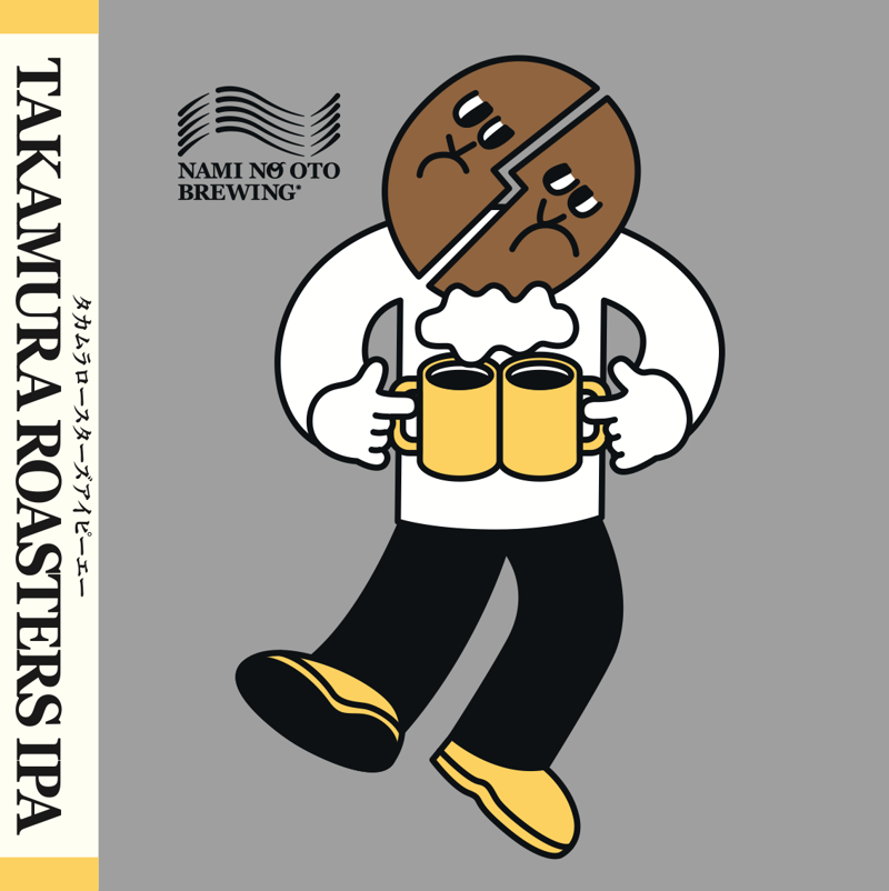 ラベルカラーは、タカムラ淡路島店のイメージカラーであるグレーをベースにデザイン。NAMI NO OTO BREWINGの専属デザイナーが手がけた、コーヒー豆をモチーフにしたキャッチーなキャラクターイラストが描かれており、飾っておきたくなるような遊び心のある仕上がりです。