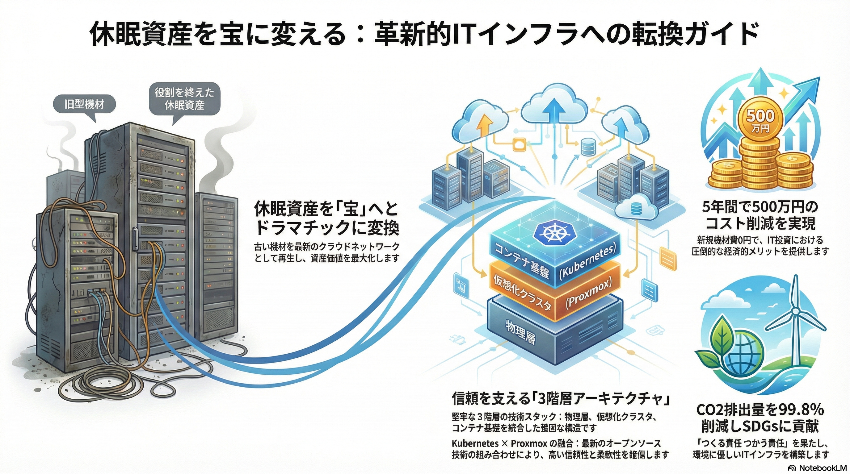 エレクス株式会社(所在地:埼玉県さいたま市浦和区、代表取締役:鈴木良雄)は、企業の倉庫に保管されている休眠サーバー・PCを再活用し、機材購入費0円でプライベートクラウド環境を構築する「休眠資産活用型プライベートクラウドサービス」を2026年2月より提供開始します。クラウド事業者との比較で5年間運用時に最大500万円規模のコスト削減が見込め、月額のサービス利用料は不要、データは完全自社管理。IT投資負担軽減とSDGs貢献を両立する新しい選択肢として提案します。