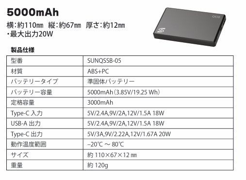 [株式会社サンコネクション 新商品] 発火・膨張が極めて発生しない準固体電池搭載モバイルバッテリー [SUNQSSB-09]・[SUNQSSB-05] を発売