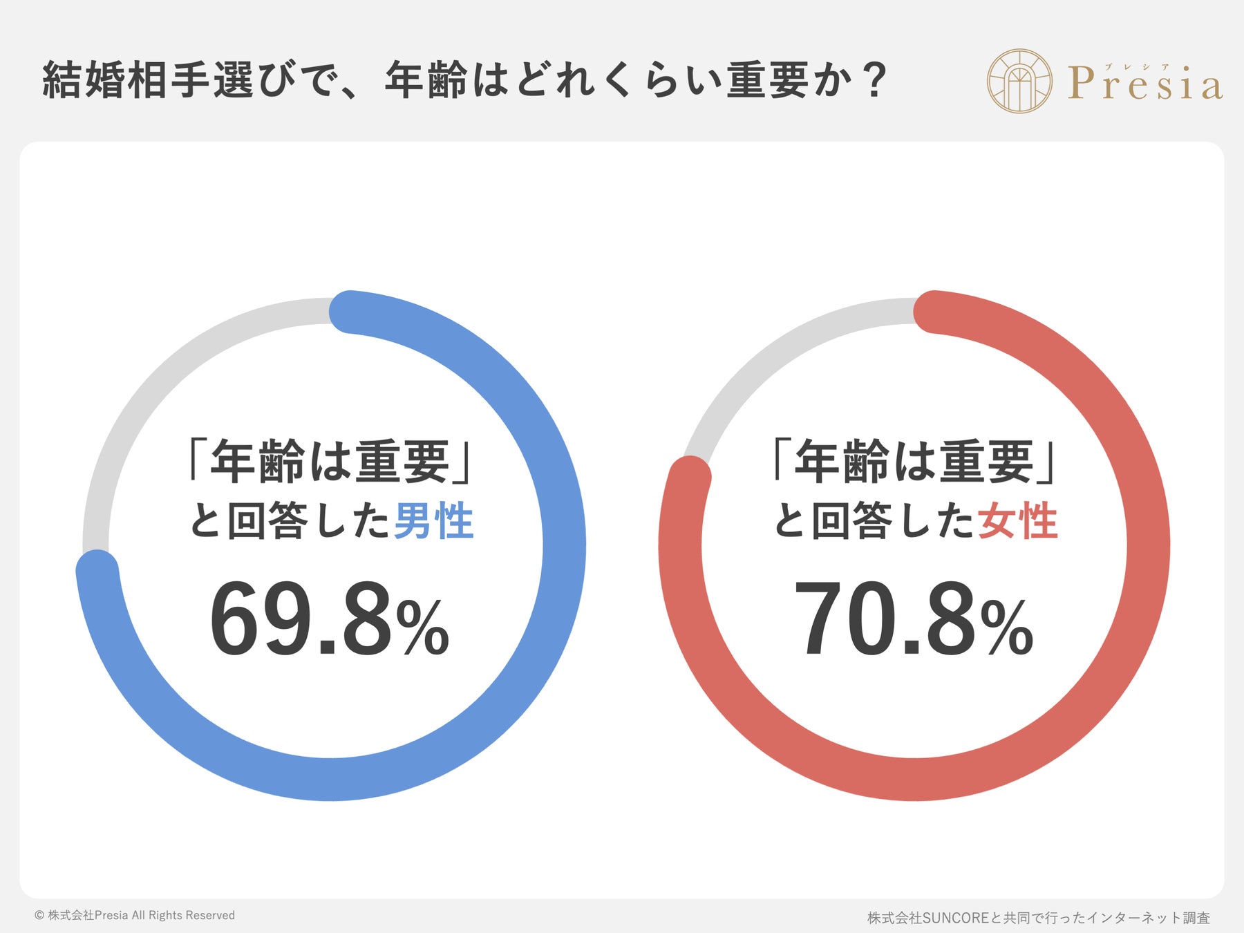 婚活に「年齢の壁」は実在した。78%超が不利と回答。結婚相談所Presiaが300名に調査