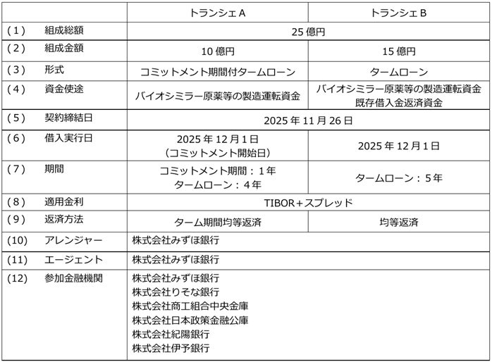 このような事業環境の下、旺盛な市場需要に応え、安定供給を実現するためには、バイオシミラー原薬等の製造運転資金の安定的な確保が不可欠です。本契約は、これら原薬等の製造・納品計画を着実に遂行し、安定供給体制を維持・強化するために必要な資金調達であり、当社が掲げる2026年度の連結営業黒字化を確実に実現するための基盤となるものです。