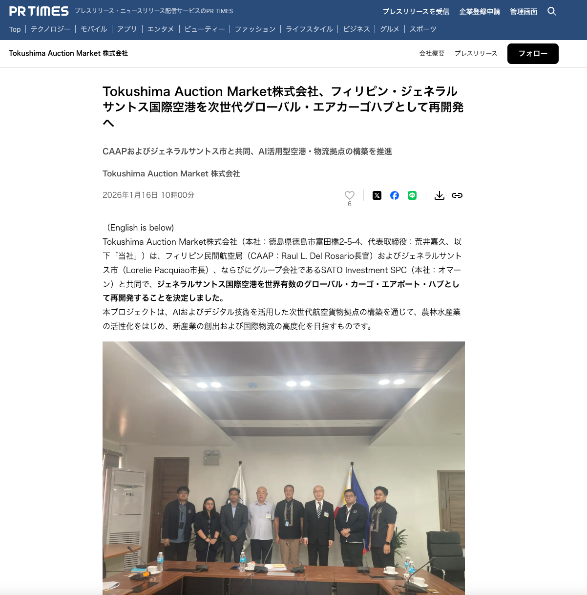 Tokushima Auction Market株式会社グループ Sato Investment SPC、フィリピン食肉グループと戦略提携