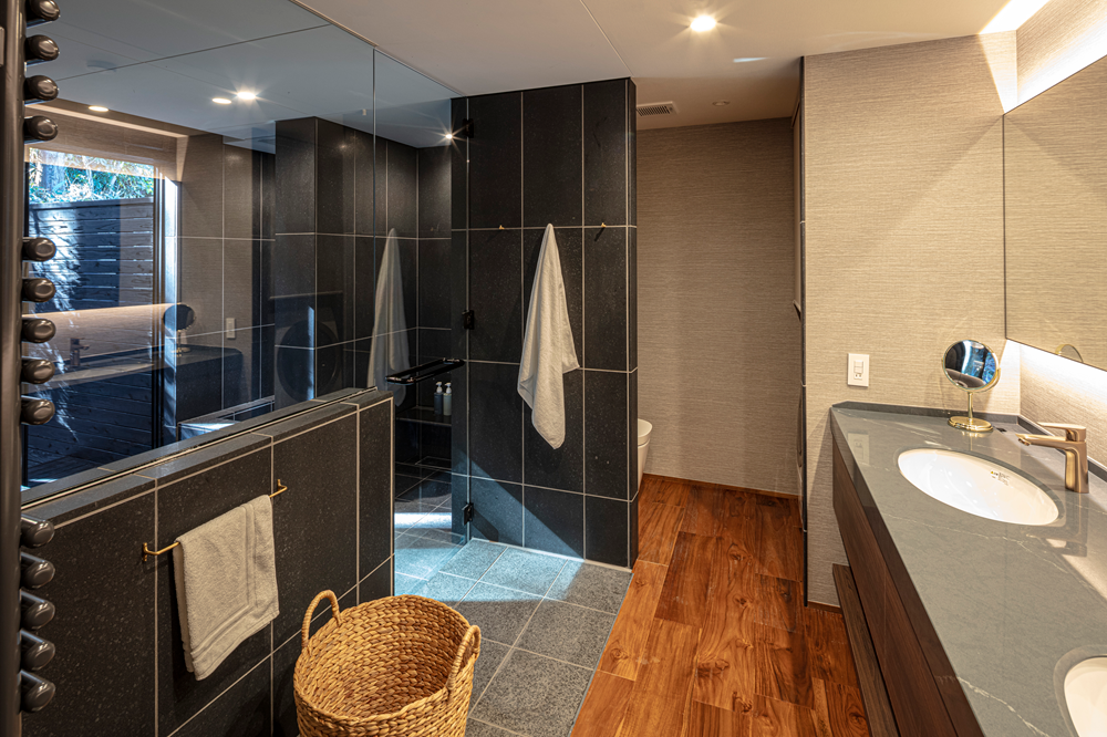 木や石、焼物といった自然素材をふんだんに使用した空間は、まるで“箱根に暮らす”ような心地よさと、非日常のラグジュアリーさを両立させています。特に、大きな窓から箱根の森を望む空間は、日常の喧騒から離れて心身を解き放つ極上の空間を提供します。