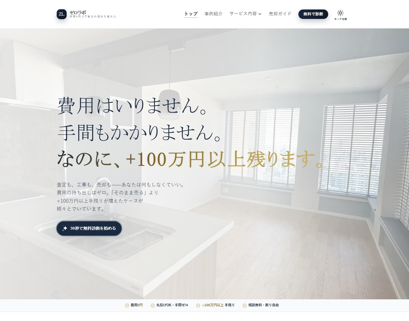 全国の空き家問題を解決!初期費用0円で「手残り」を最大化 リノベーション売却支援サービス「ゼロラボ」公式サイト4月23日公開