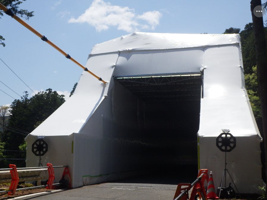 この工法は、静岡県の「新技術・新工法情報データベース」に公式登録されています(登録番号1832、評価レベル3)。公 共工事における鋼橋・歩道橋・沿道部などの仮設防護に最適な技術として、省人化・工期短縮・安全性向上の効果が認めら れました。 さらに2025年には、米国規格NFPA 701と日本防炎協会の防炎性能試験の両方に適合した「IARA(イアラ)」シリーズを 発表。業界初の防炎シュリンク養生として、長期施工や火気管理区域でも安心して使える体制を整えました。 ある現場では、板張り工法と比較して、作業員費用と材料費を合わせたトータルコストで約67万円の削減を実現しています (※現場条件により異なります)。