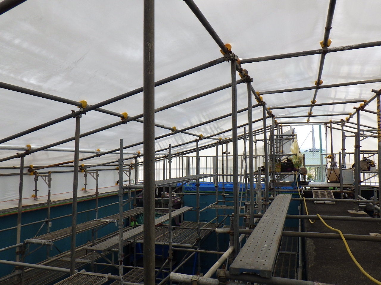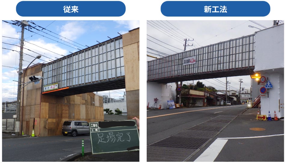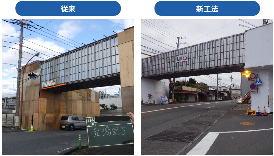 この発想の転換により、設置・解体の大幅な時間短縮、少人数での施工、廃材の削減、そして光が入る明るく安 全な作業環境を実現しました。