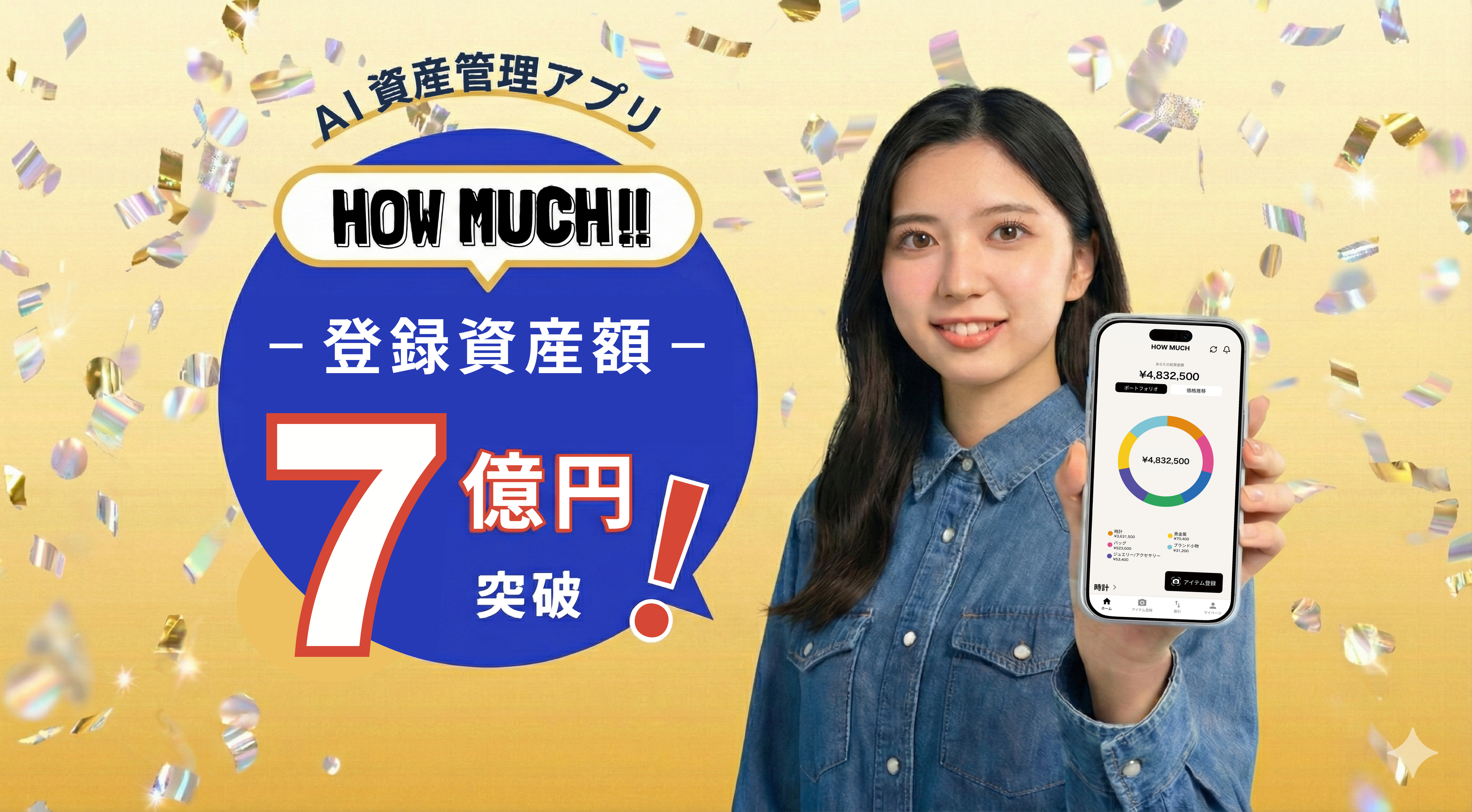 株式会社Aicon(本社:東京都渋谷区、代表取締役:大川遥平)が提供する「HOW MUCH」は、ユーザーが撮影した商品画像をもとにAIが価値を算出し、保有アイテムを資産として管理できるアプリです。2025年11月のリリース以降、ユーザーに登録いただいた資産の評価額が累計7億円に到達したことをお知らせいたします。