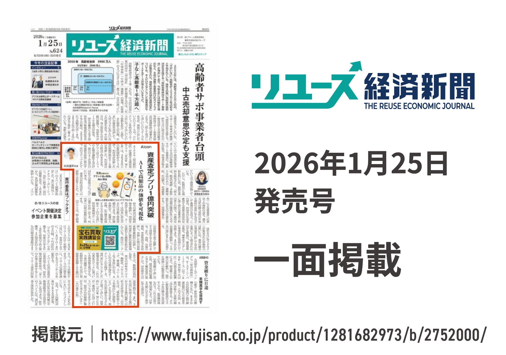 本サービスは、リユース業界専門紙「リユース経済新聞」において一面掲載されるなど、業界内外からも注目を集めています。