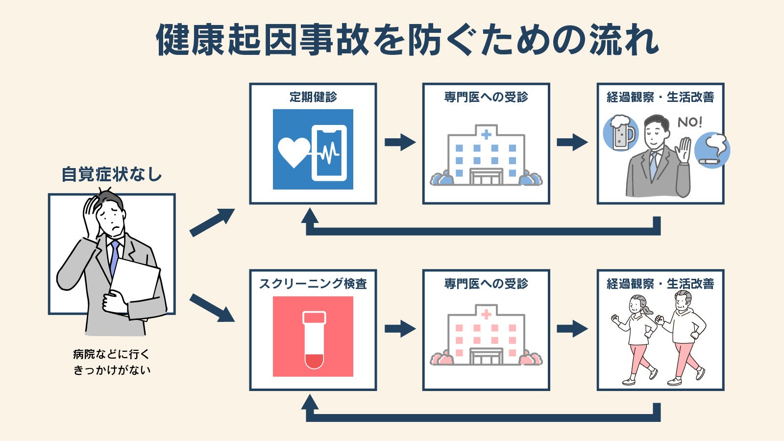 気付きにくいが、発症すると命にかかわることがわかります。定期的な検査を受検することで、自身を守ることに繋がります。