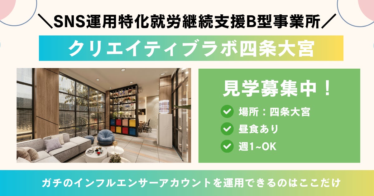 2026年、株式会社ミライト(本社:京都市中京区、代表取締役:荒井 裕)は、京都・四条大宮にSNS運用に特化した就労継続支援B型事業所「クリエイティブラボ四条大宮」を開所します。