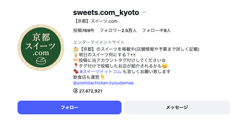 特に大きな特徴は、フォロワー2.5万人の人気アカウント『京都スイーツ.com』を、