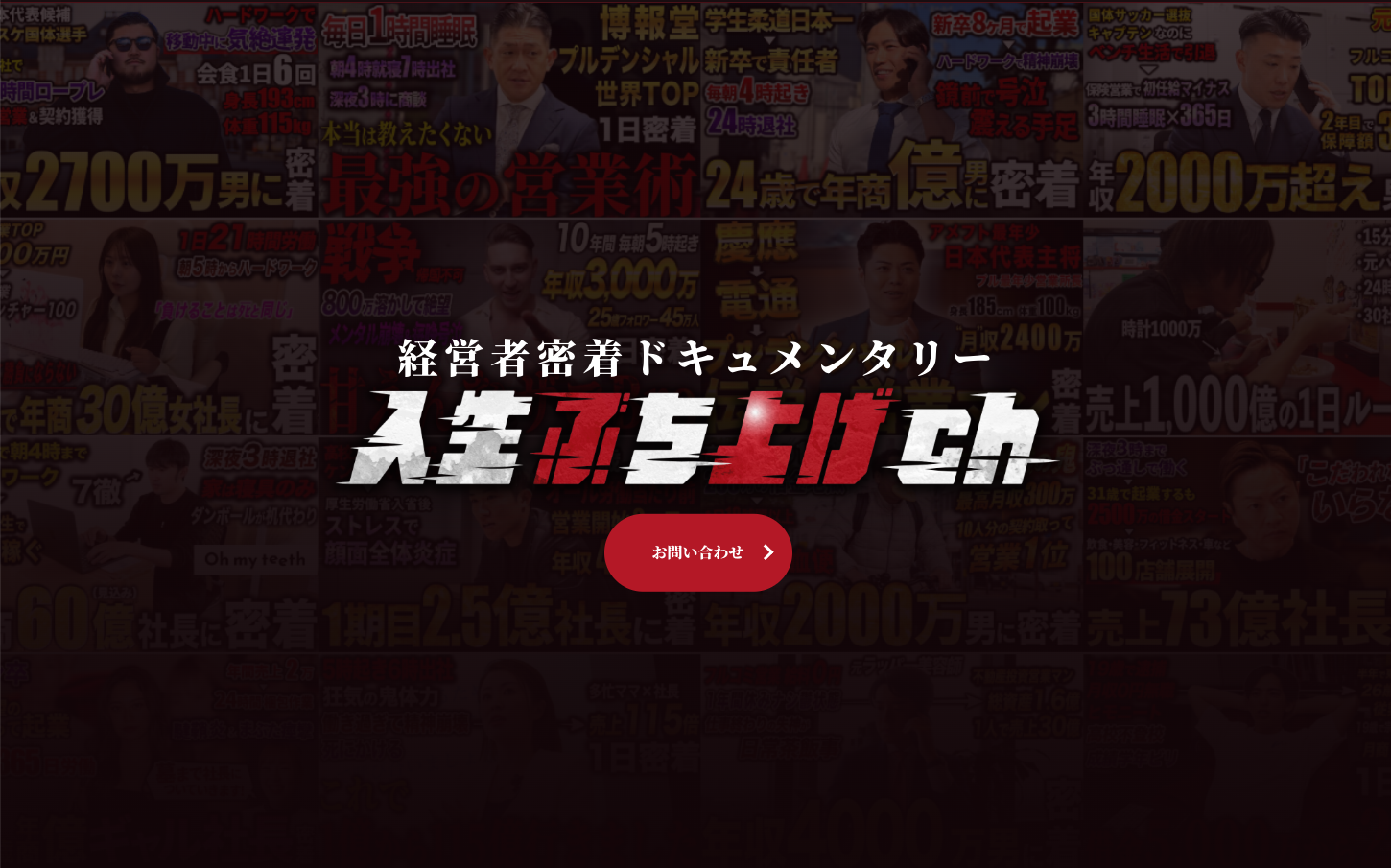 「人生ぶち上げch」は、経営者のリアルな1日に密着するドキュメンタリー形式のYouTubeチャンネルです。ベンチャーから上場企業まで50社を超える企業の経営者に密着し、理念・ビジョン・カルチャーを映像化してきました。チャンネル登録者数は4.36万人、動画本数は311本、最高再生回数は60万回を記録しています。