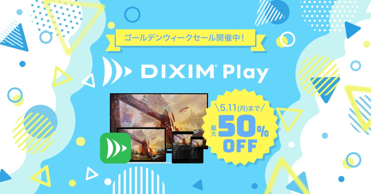 株式会社デジオン(本社:福岡県福岡市、代表取締役社長:佐野 功)は、家庭内ネットワーク経由で録画番組やテレビ番組の視聴を可能にするネットワークプレーヤーアプリ「DiXiM(ディクシム) Play」シリーズ全商品のアプリライセンスを定価の50%オフで提供するGW期間限定セールを、2026年4月28日(火)から5月11日(月)まで開催することをお知らせいたします。