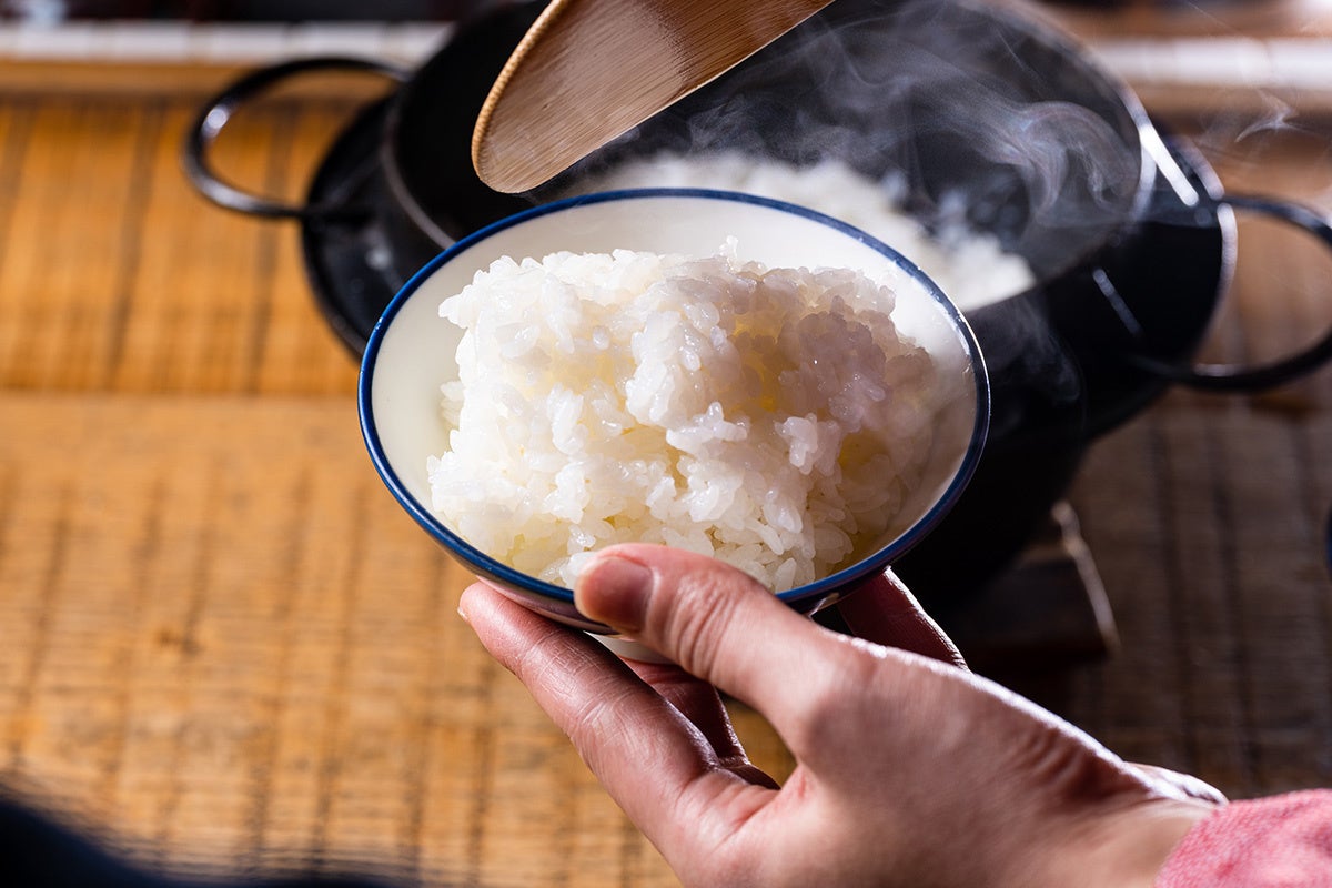 数々の品評会で日本一となる金賞に輝く米作り名人・本多義光氏が手がける群馬県みなかみ産のコシヒカリを、南部鉄器で炊き上げます。