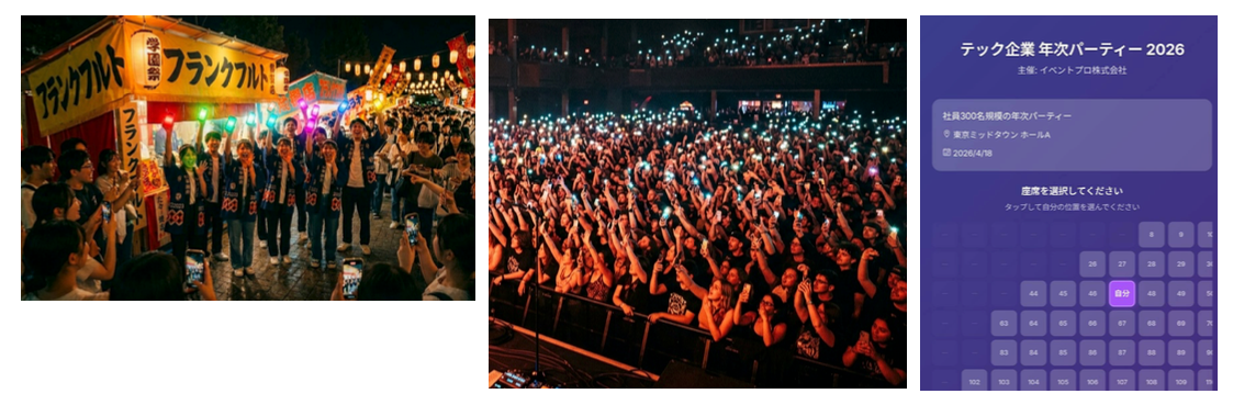 座席指定による文字・グラフィック: 観客の座席番号を紐づけることで、会場全体に光のアートやメッセージを浮かび上がらせることが可能。観客席が一瞬でディスプレイになる。