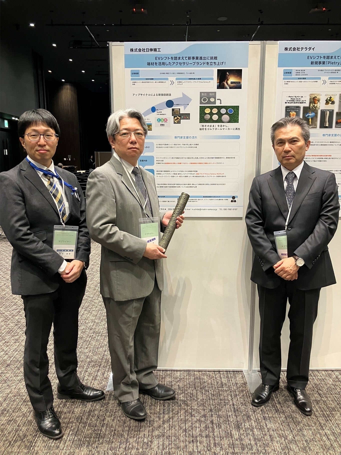 日伸精工が加盟しております埼玉県産業振興公社では、サーキュラーエコノミー事業推進の研究会が組織されており、弊社は早い時期からこの研究会に参加致しました。当初は全てが手探り状態でしたが、何度かのセミナー及びシンポジウムを経て次第に勝手が分かるようになってきました。同公社主催の展示会(エコプロ2024、2025)にも出店し、2年間に渡る地道な努力がこの度の表彰に結び付いたものと考えております。