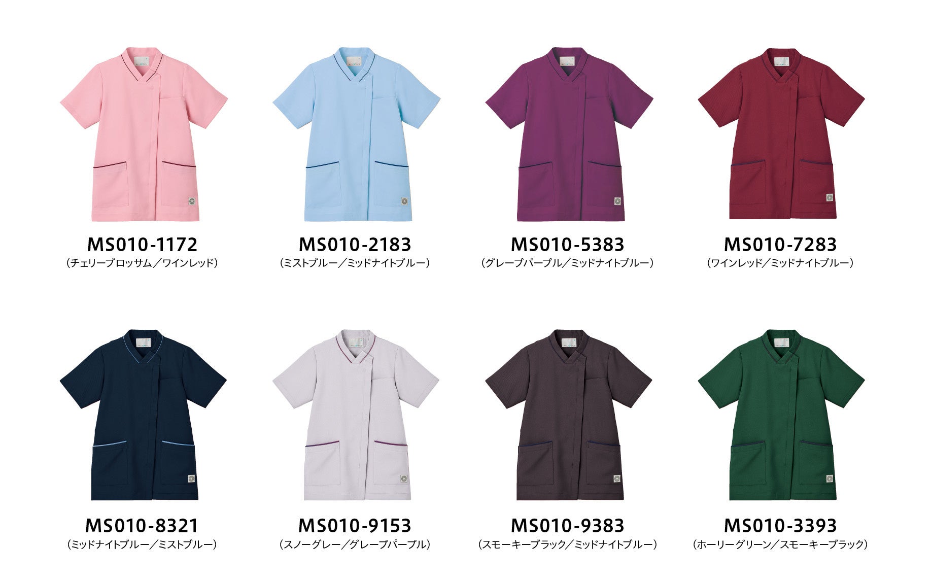 今回新たにリリースとなったジップアップタイプは、スクラブMS005のカラーバリエーションの中から人気の8色を中心にご用意しました。