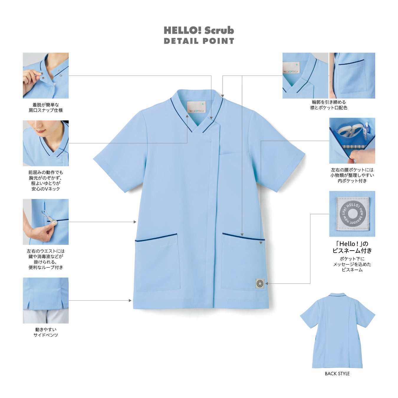スクラブ(MS010)は、軽い着心地のストレッチ素材と体型を拾わないスマートシルエットを採用。
