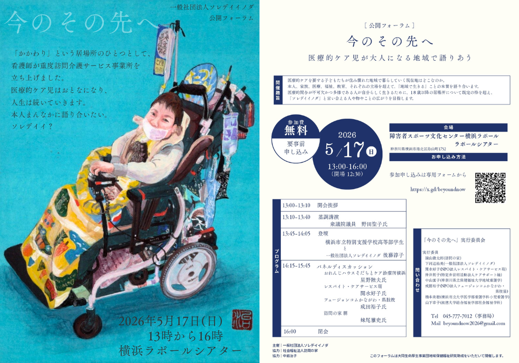 認定NPO法人おれんじハウス(所在地:横浜市、理事長:中陳亮太、以下 当法人)は、2026年5月17日(日)に開催される一般社団法人ソレデイイノダ主催の公開フォーラム「今のその先へ 〜医療的ケアが必要なこどもが地域で生きるということ〜」に、2026年6月開設予定の「おれんじハウスそだちとケア診療所横浜」の院長、星野陸夫医師がパネリストとして登壇することをお知らせします。