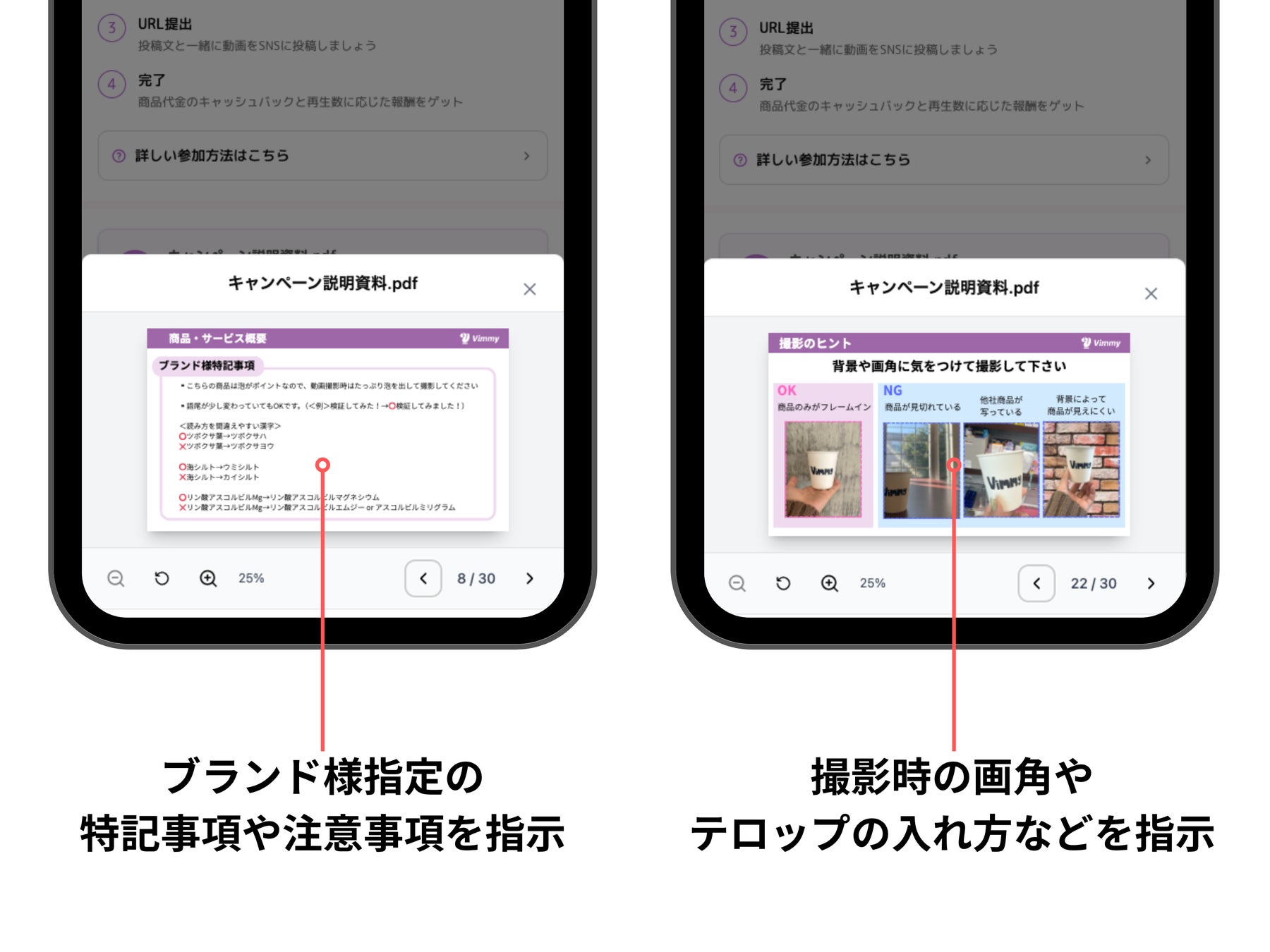 Vimmyでは、キャンペーン説明資料を読まなければ参加できない仕組みを採用しています。