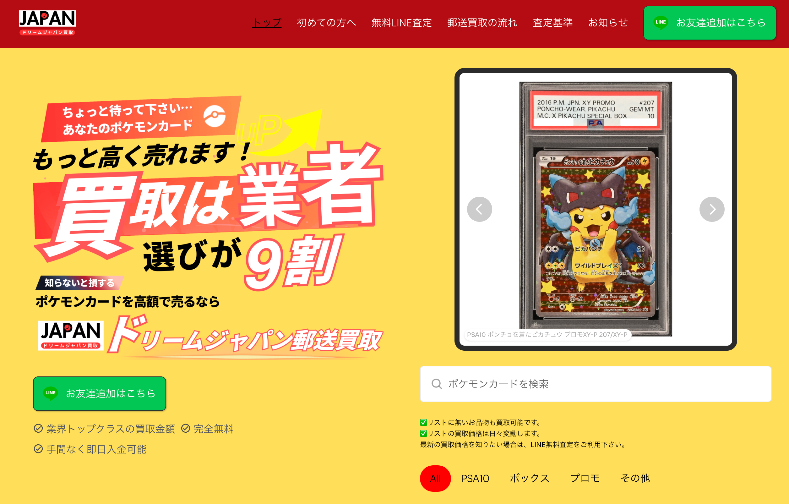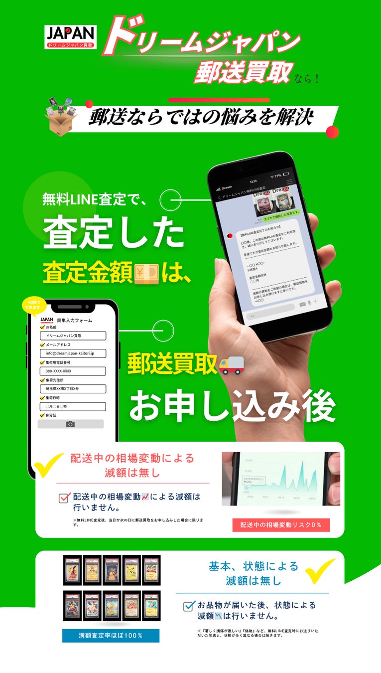 【ドリームジャパン郵送買取】ポケモンカード専門で、主にPSA10鑑定品やシュリンク付きボックスを、業界トップクラスの買取価格で即日で高額買取!