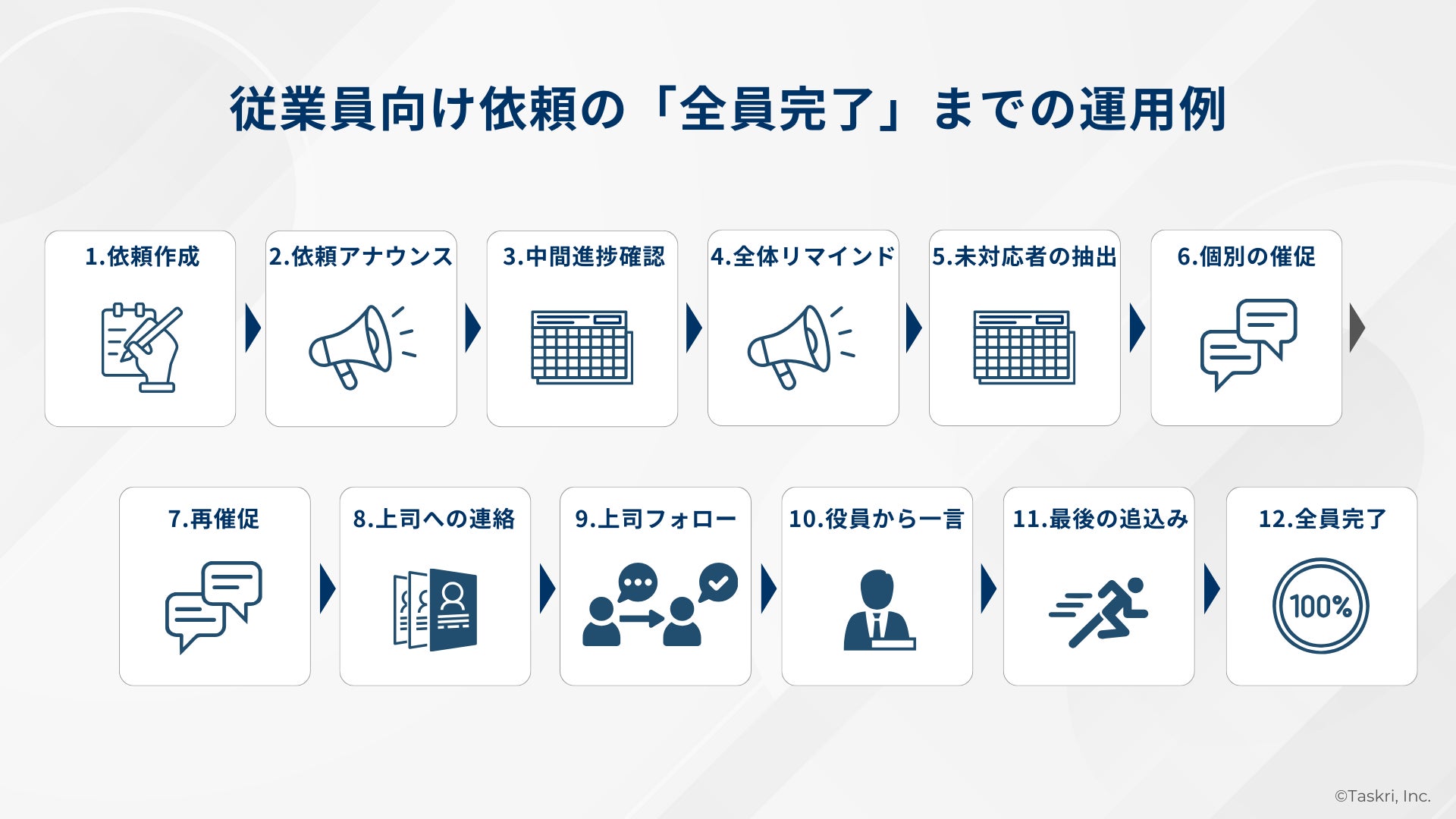 『Taskri』は、未対応者への働きかけが繰り返し発生する依頼に適しています。