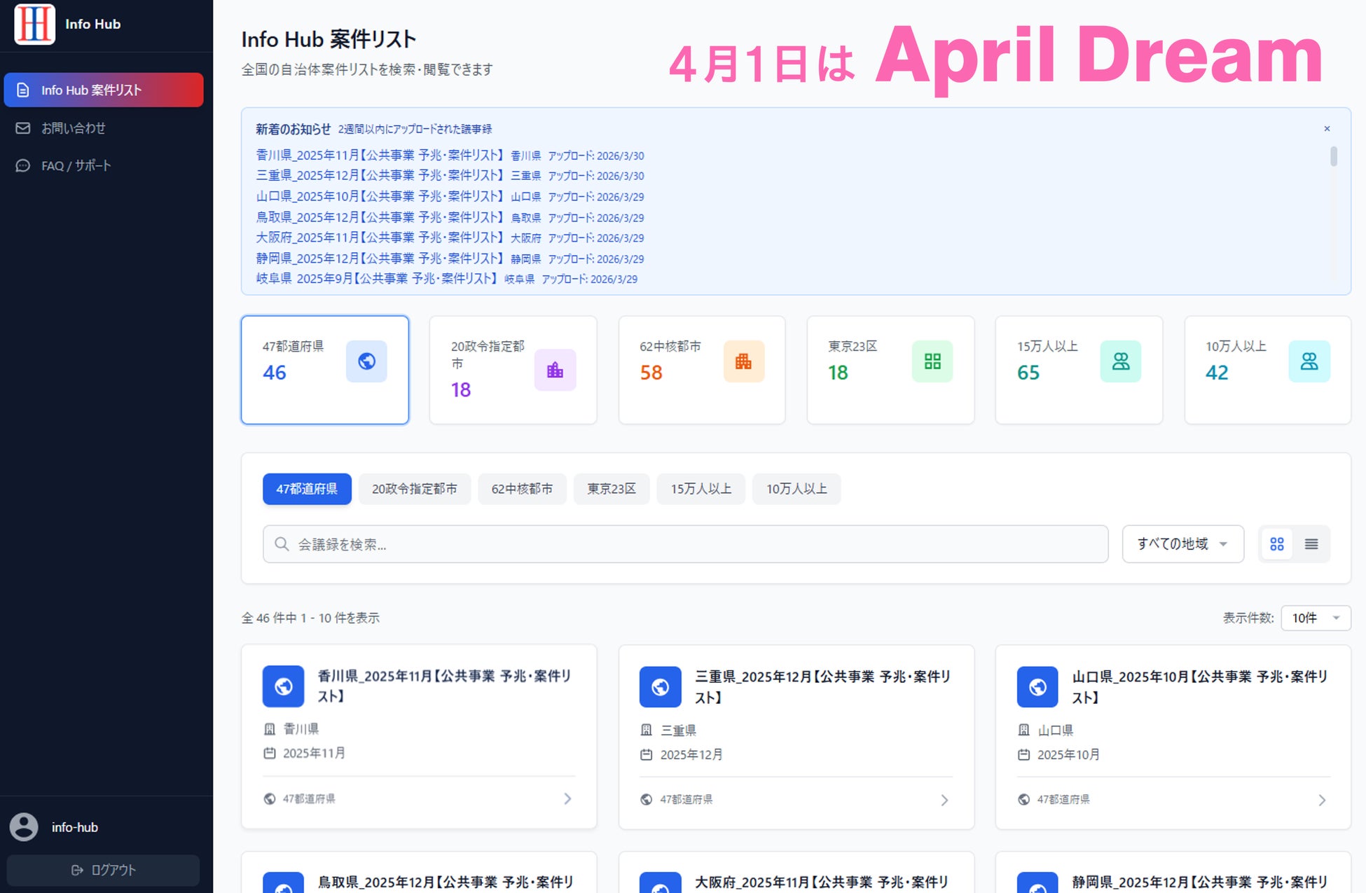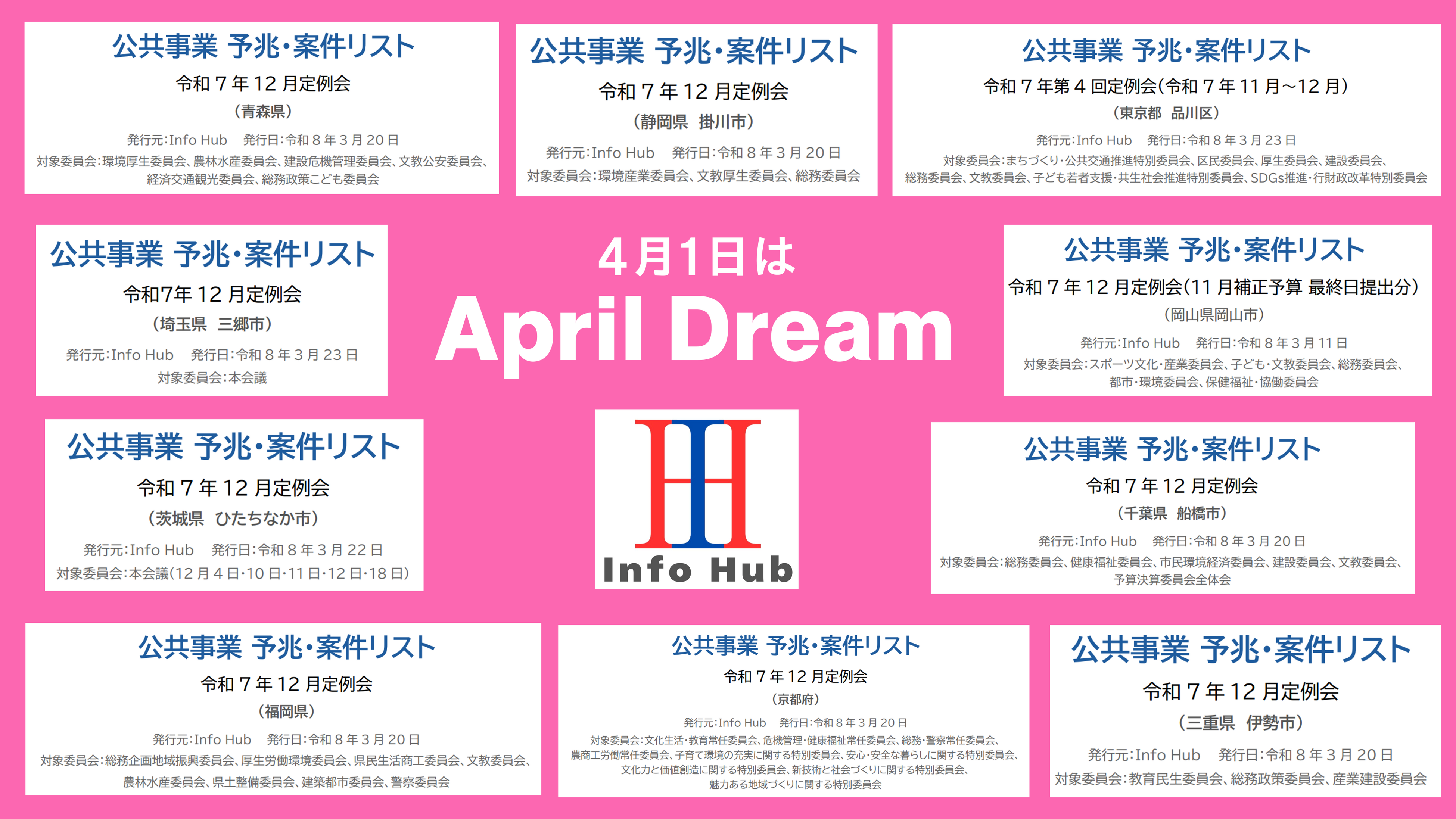 株式会社Info Hub(本社:東京都渋谷区、代表取締役:久田友和)は、2026年3月25日より、建設・公共ビジネス特化型の新規案件探索サービス「Info Hub」の提供を開始しました。