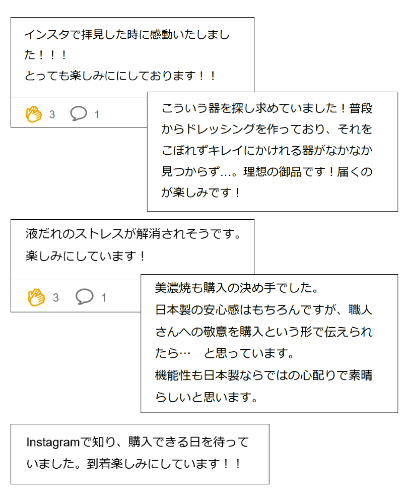 ・商品が届くの楽しみにしてます。