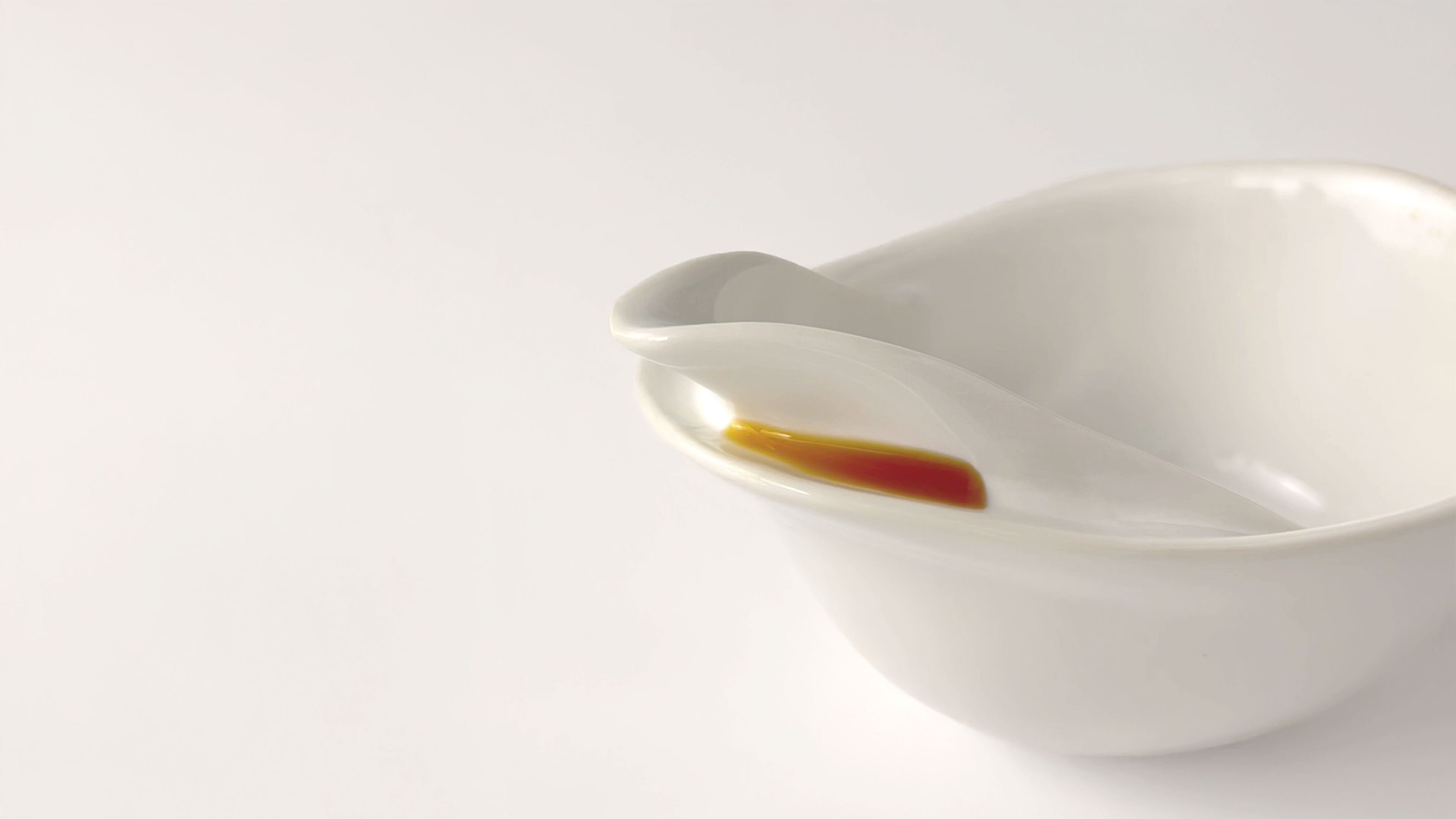 UKEMARU.(うけまる)は、その垂れてしまった液をうつわが受け止め、さらに容器の中へ戻す構造を採用。調味料の調合から食卓での使用まで、これひとつで完結する新しいテーブルウェアです。