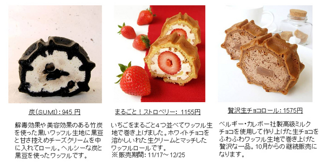 11月のNEWくるくるワッフルには、炭を使用した一風変わったワッフルや、