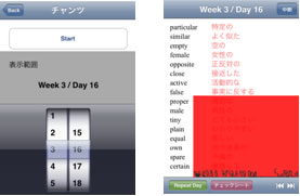 範囲を、日単位(16単語)・週単位(112単語)で切り替えられます。