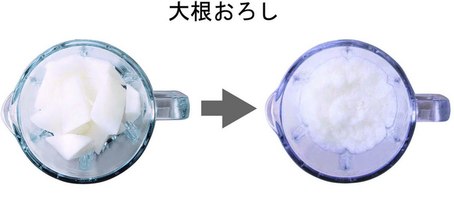 たとえば、簡単そうで、意外と力仕事の「大根おろし」。このブレンダ―なら、皮をむき、乱切りにした大根を入れてスイッチを回すだけで、フワッとなめらかな大根おろしがあっという間にできあがる。また、スイーツやスープ作りなど、手間のかかる工程もらくらくサポート。