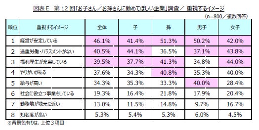 ・調査名称 : 第12回「お子さん/お孫さんに勤めてほしい企業」調査