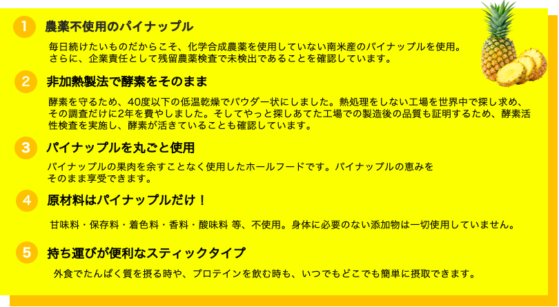 ■たんぱく質と一緒に!パイナップル酵素『ブロメライン』