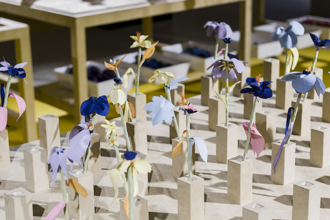 今回の展示制作を依頼されたのは、すでにインタラクティブ・デザインの世界で定評と名声を得ている2つのクリエイティブ・グループ、ファブリカとスタジオ・ミナーレ・マエダです。キュレーターであるジュリオ・カッペリーニ(アルカンターラ社アートディレクター)とドミティラ・ダルディ(MAXXI 設計デザイン・キュレーター)が両グループを招いた理由は、彼らがいわゆる「リレーションデザイン」の先駆者であるからです。インタラクティブ性は今回の展示会のメインテーマであり、触覚と視覚、触覚と聴覚、触覚と嗅覚の連携により、観衆がアルカンターラに触れたり、見たりするだけでなく、聞いたり嗅いだりという体験もできるのです。